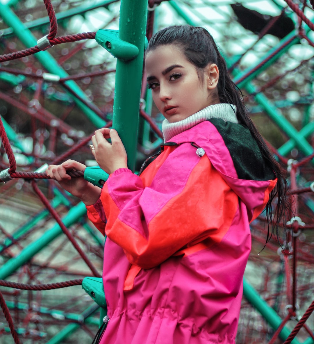 女人穿着粉红色和红色的夹克