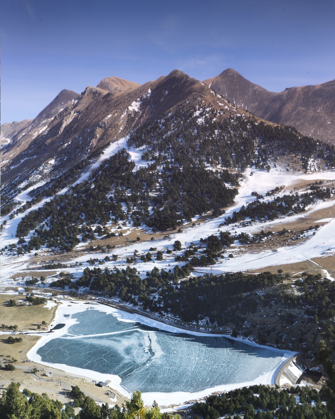 靠近山的树旁的水体