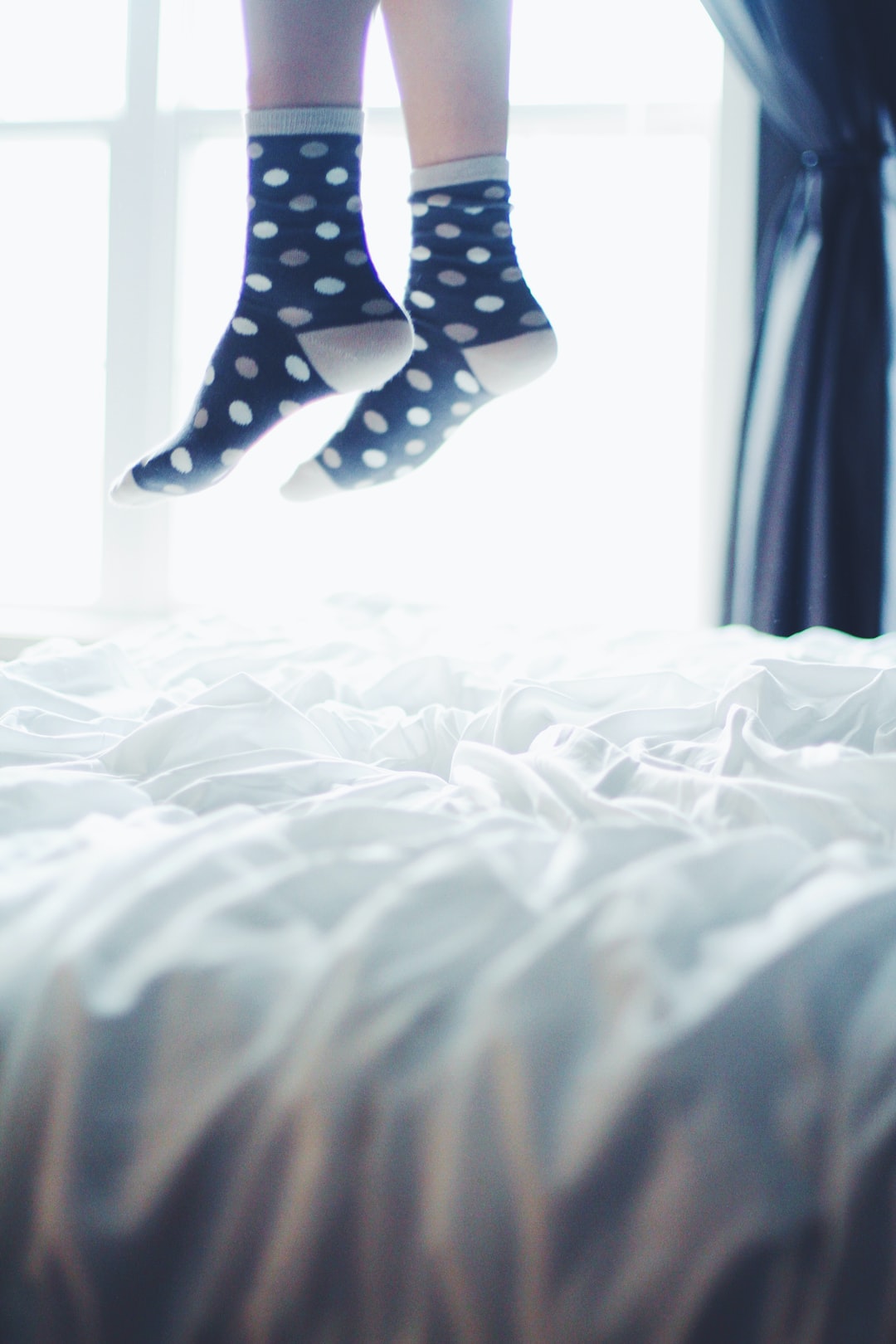 一双白色和黑色圆点短袜