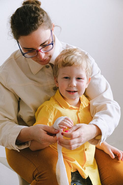 在米色地毯上照看婴儿