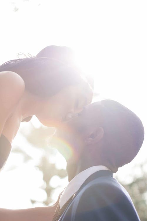 站在路标旁接吻的男人和女人
