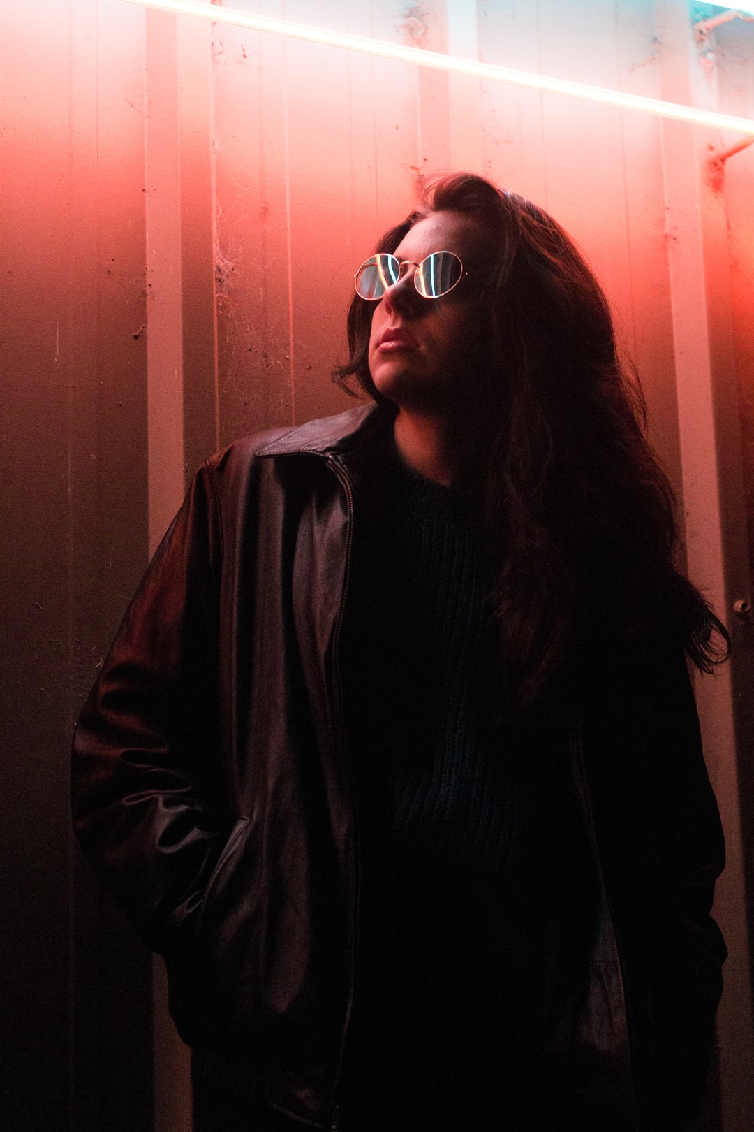 人穿着棕色的皮夹克