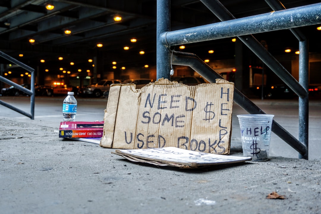需要一些二手书印刷板靠近透明塑料杯,晚上靠在黑色金属栏杆上