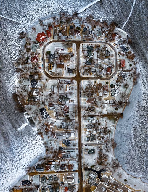 船坞被水体包围的鸟瞰图
