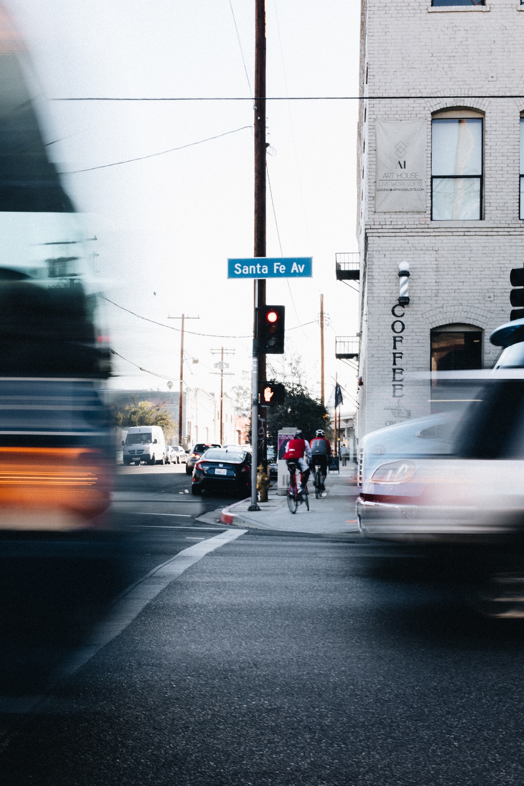 延时摄影的两个骑自行车的旁边灰色的帖子在白天