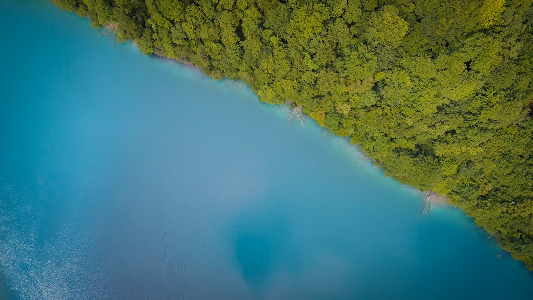 水体附近绿树的航空摄影