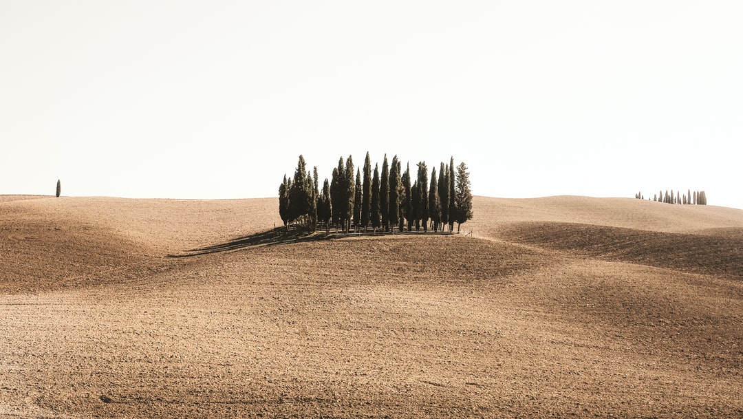 松树被棕色的田野包围