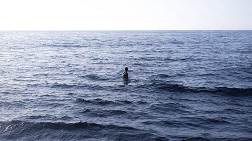 穿蓝色泳镜的人在水中游泳