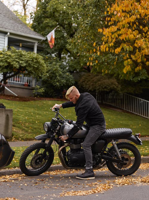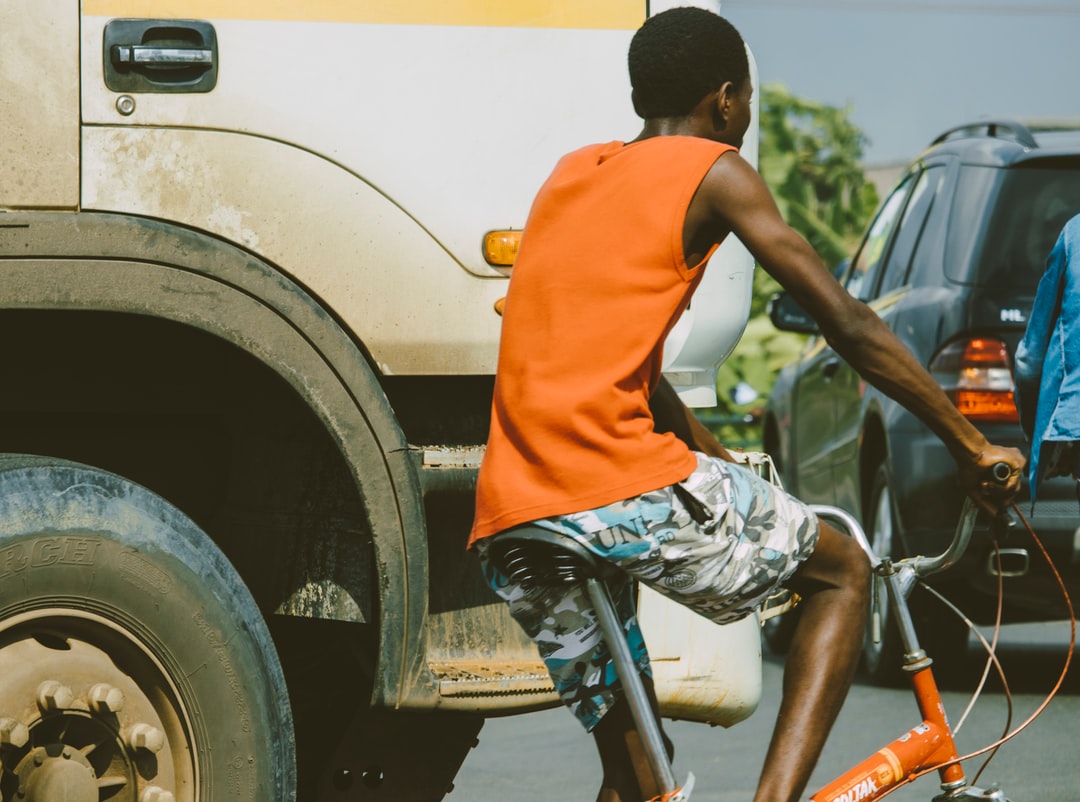 身穿橙色t恤的男子白天骑自行车