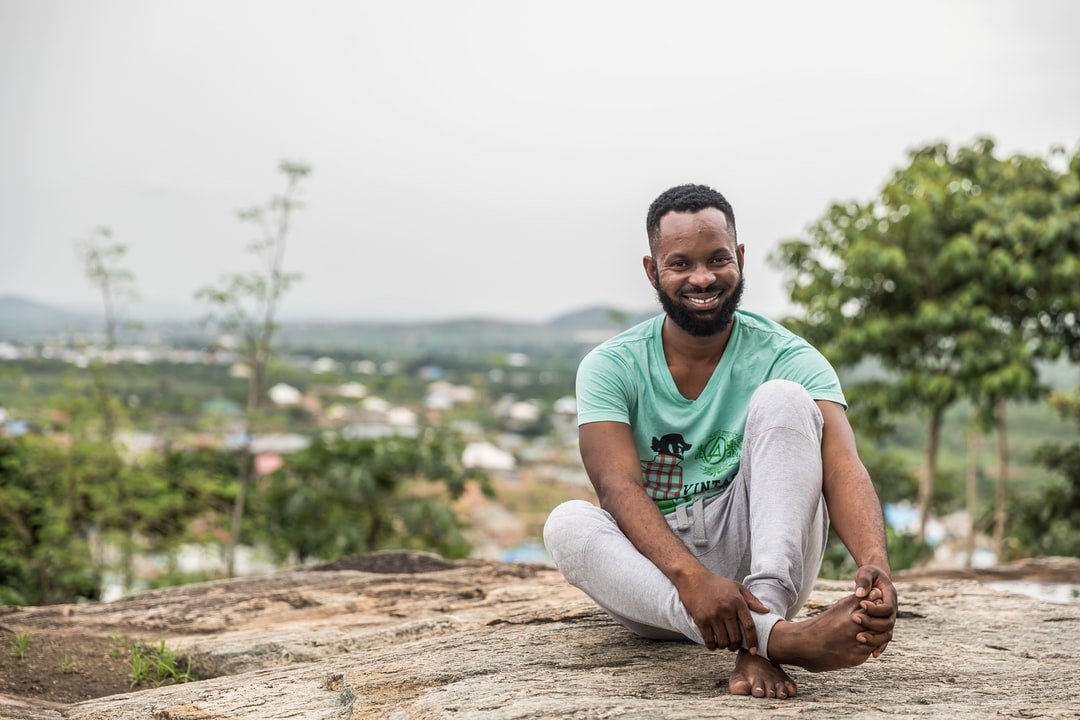 男人坐在石头上