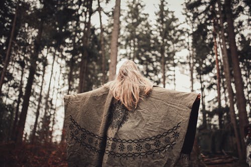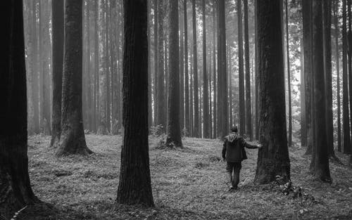 树木之间的人走在路上