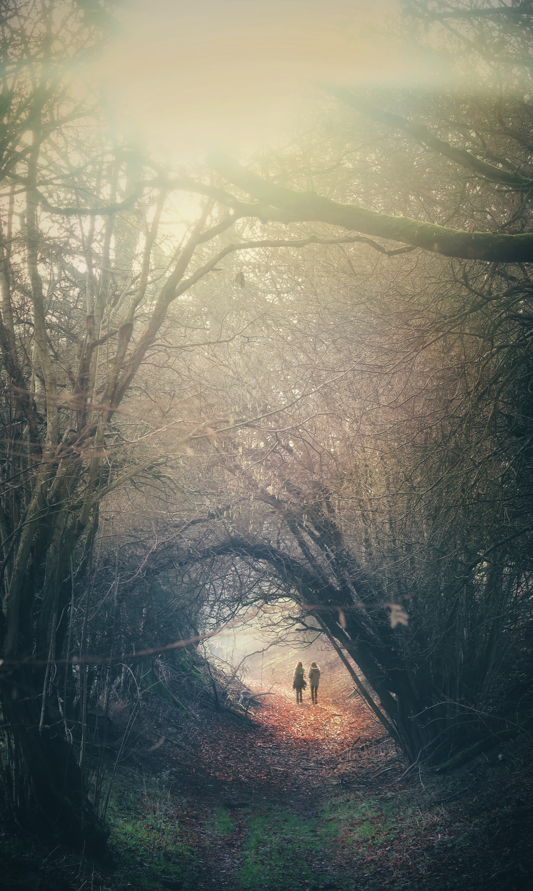 两个人走在树之间