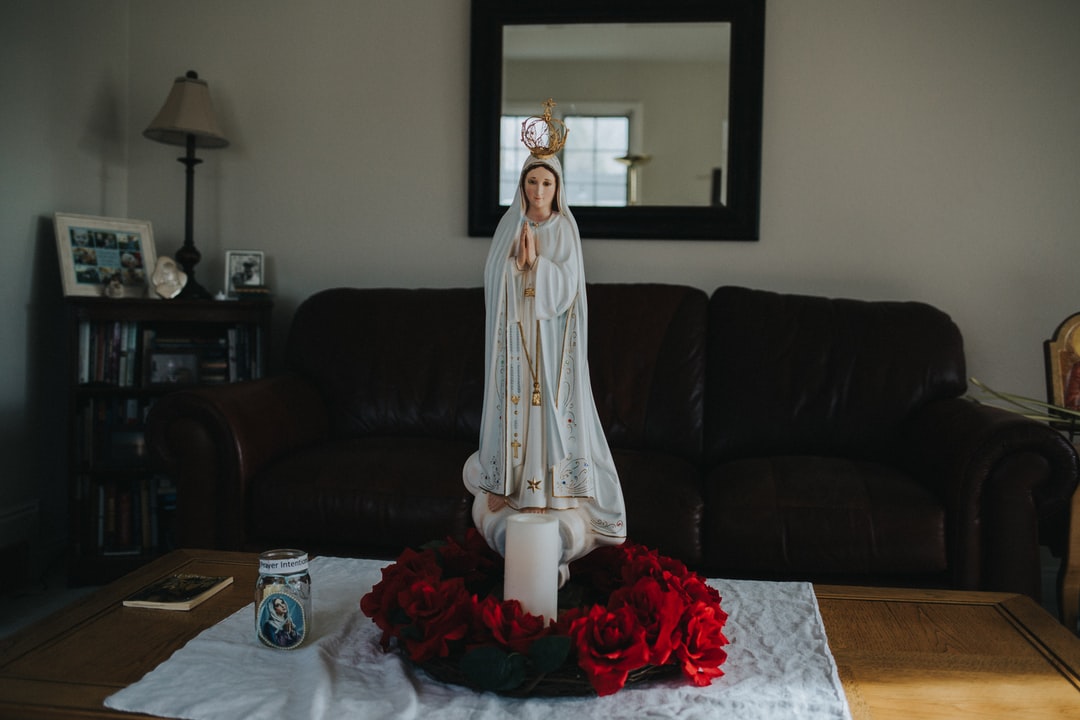 女人穿着白色长袍坐在黑色的沙发上