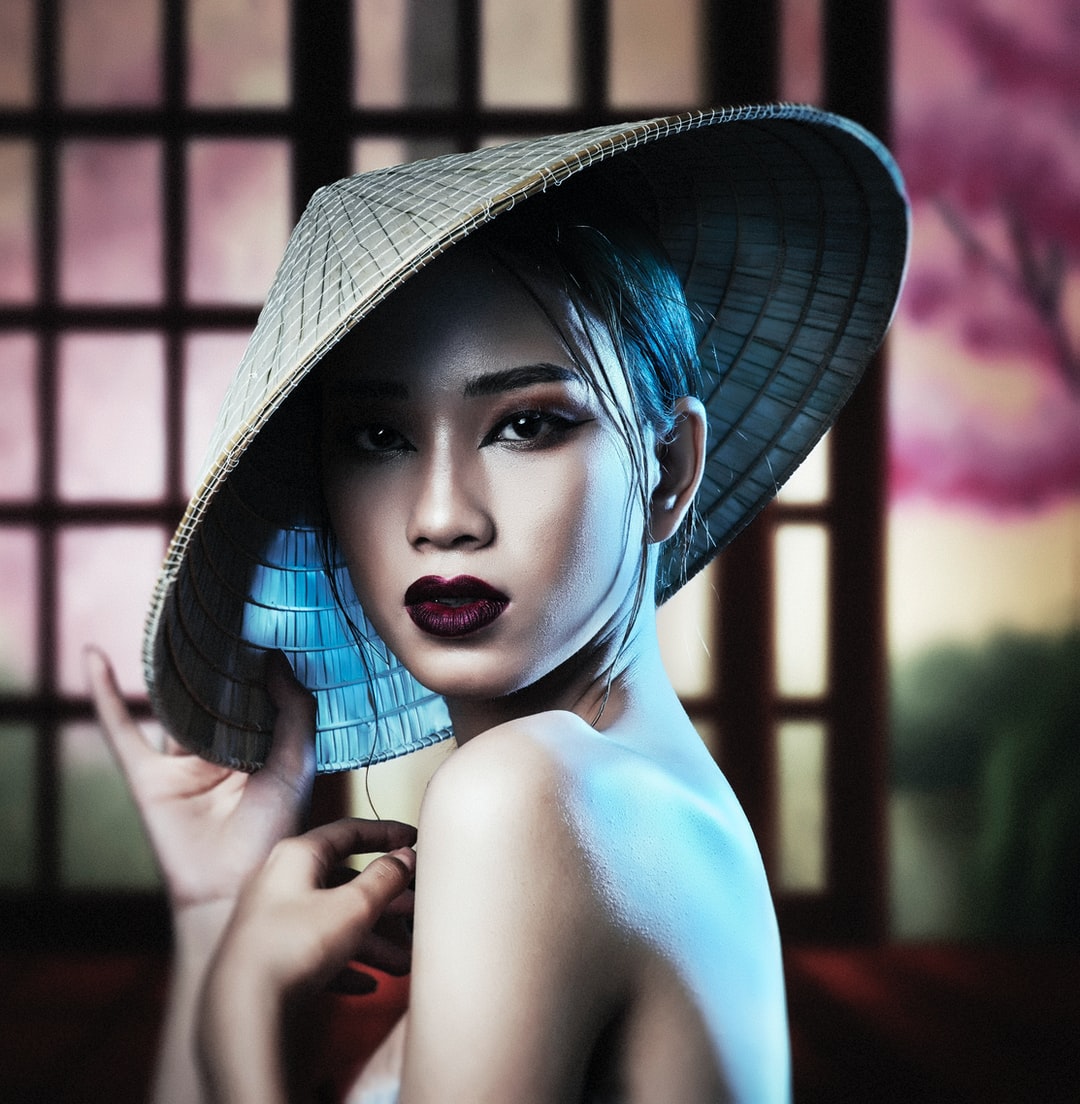 戴蓝黑软呢帽的女人