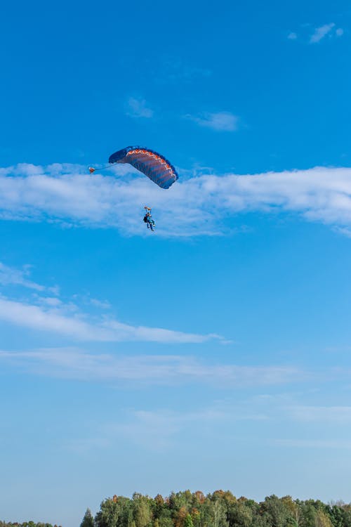 人在降落伞的水域上方黄金小时