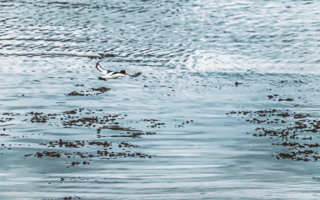 白天在海上飞行的黑白相间的鸟