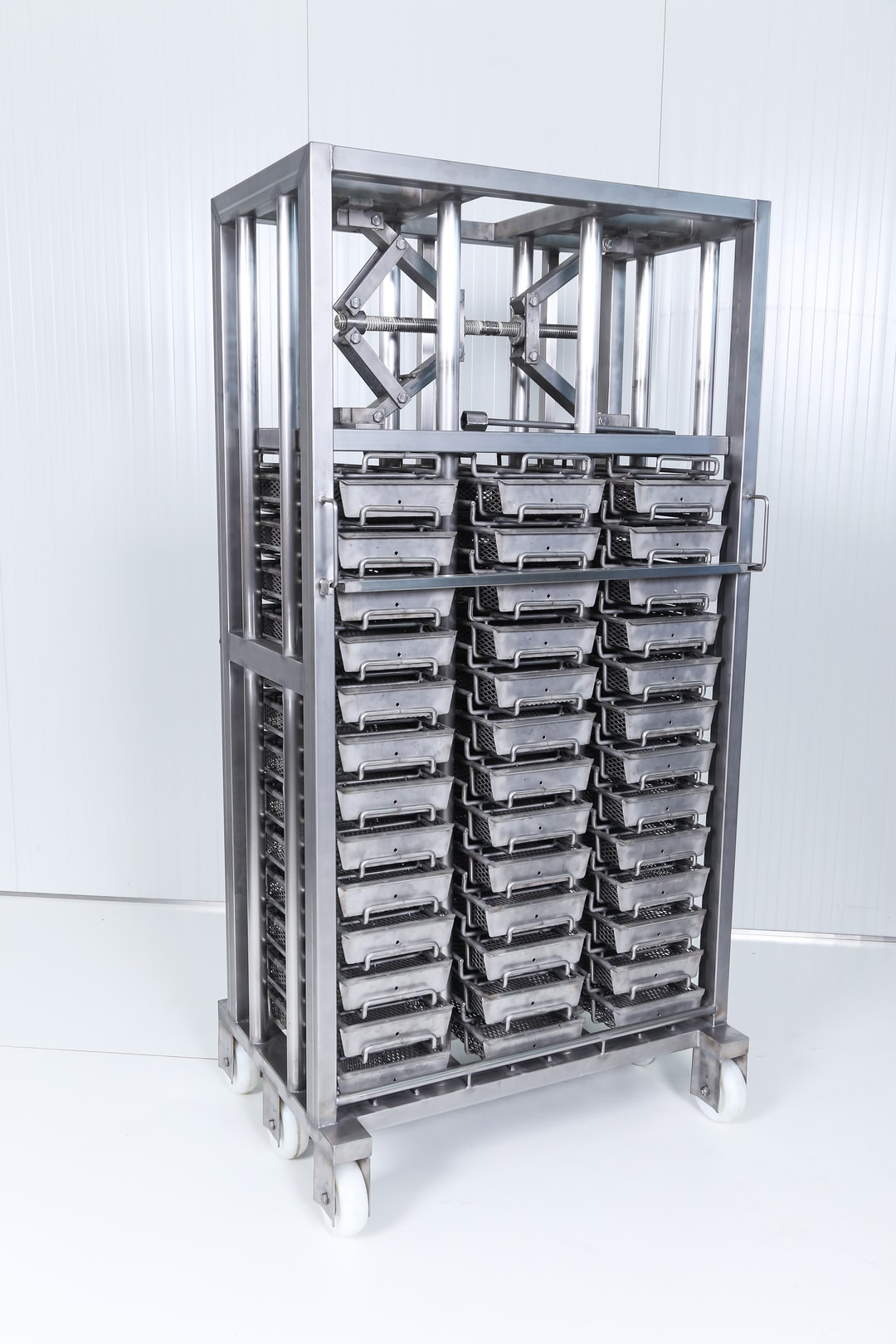 靠在白墙上的不锈钢梯子