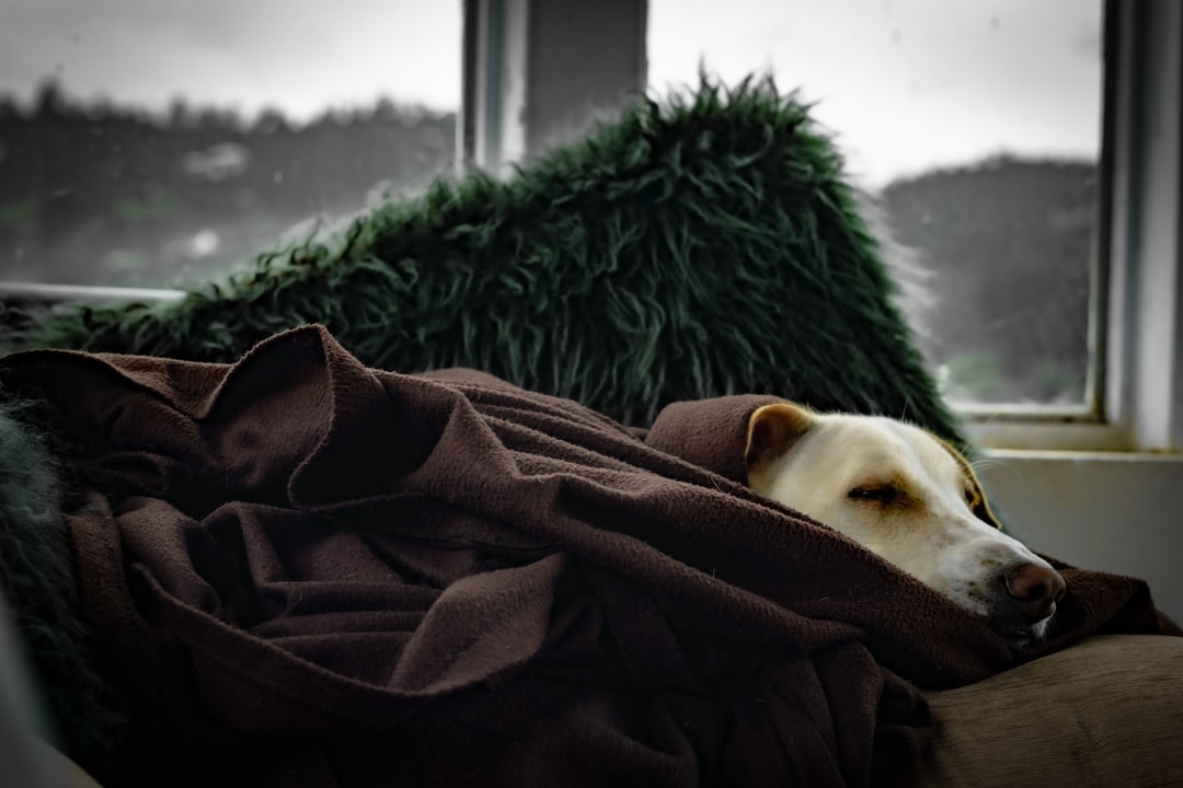 白色短毛狗,覆盖棕色毯子