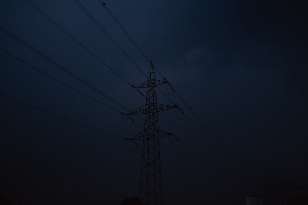 黑暗天空下的黑色电塔
