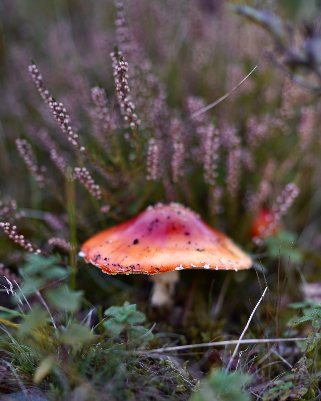 棕色蘑菇在绿色的松树