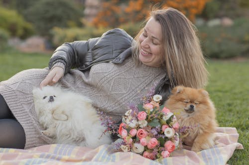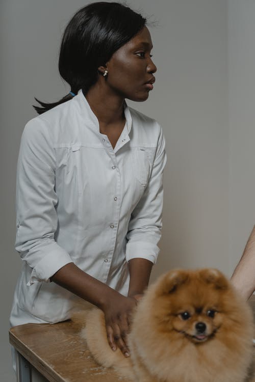 灰色水泥地面上的棕色波美拉尼亚小狗