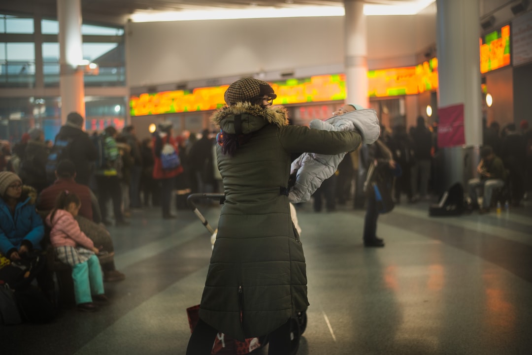 女人带着孩子