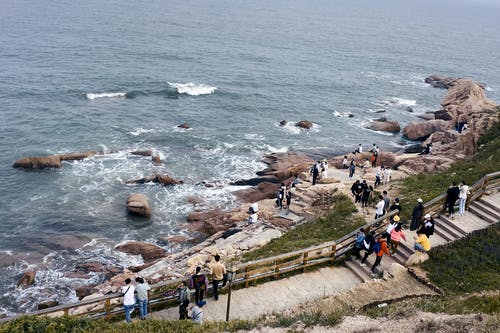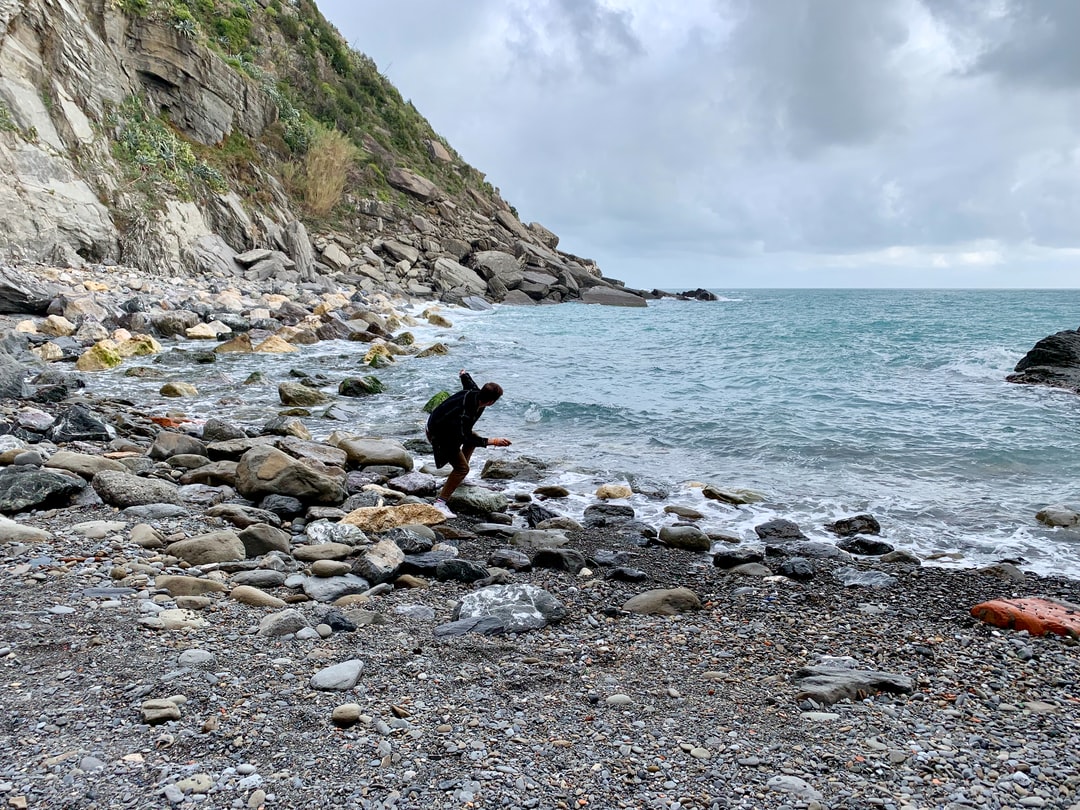 白天站在海边岩石上的人