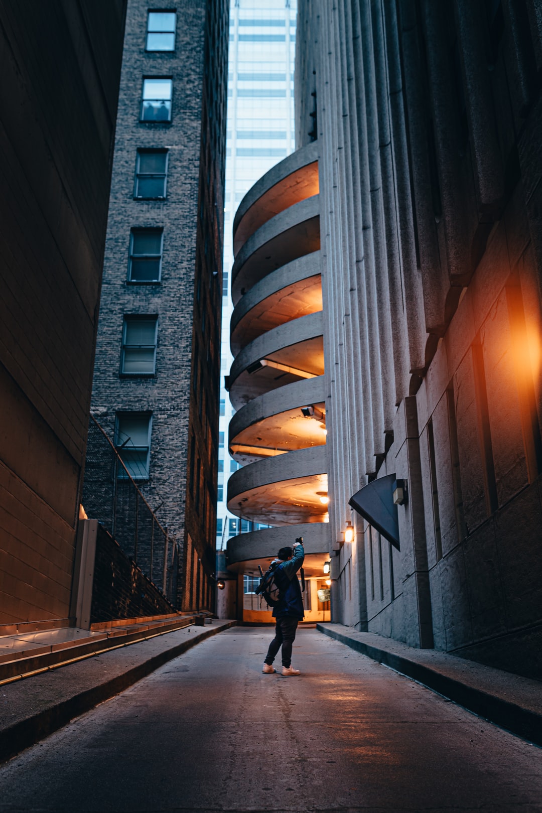 在白天黑夹克男子走在人行道上