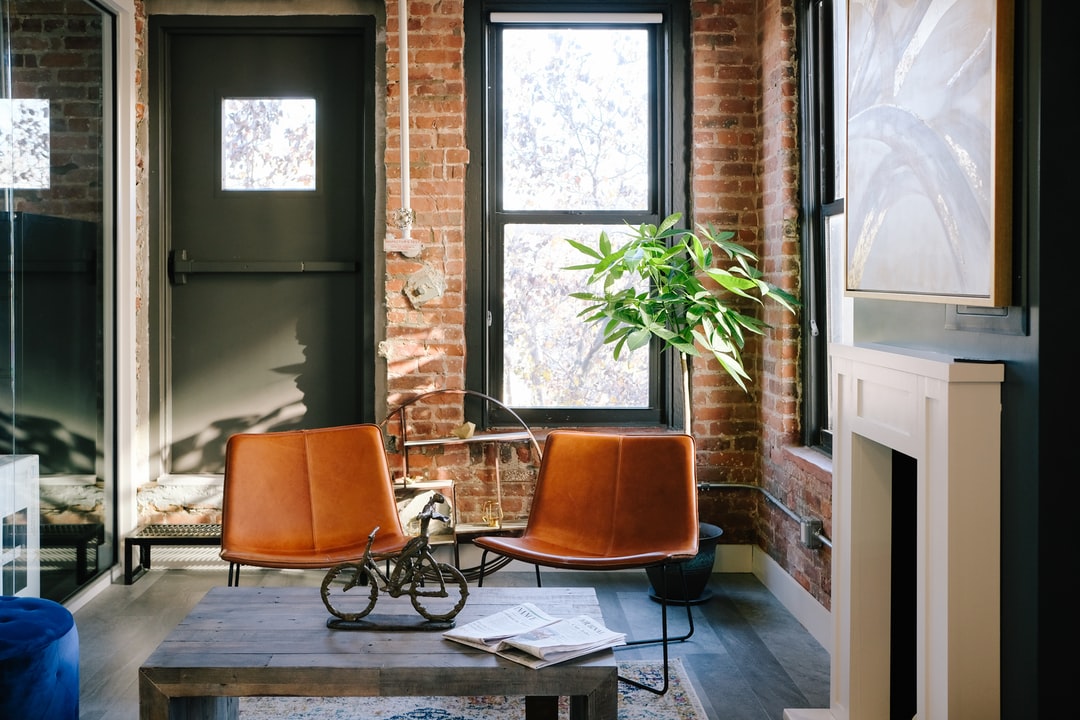 房间里有两把橙色的空椅子