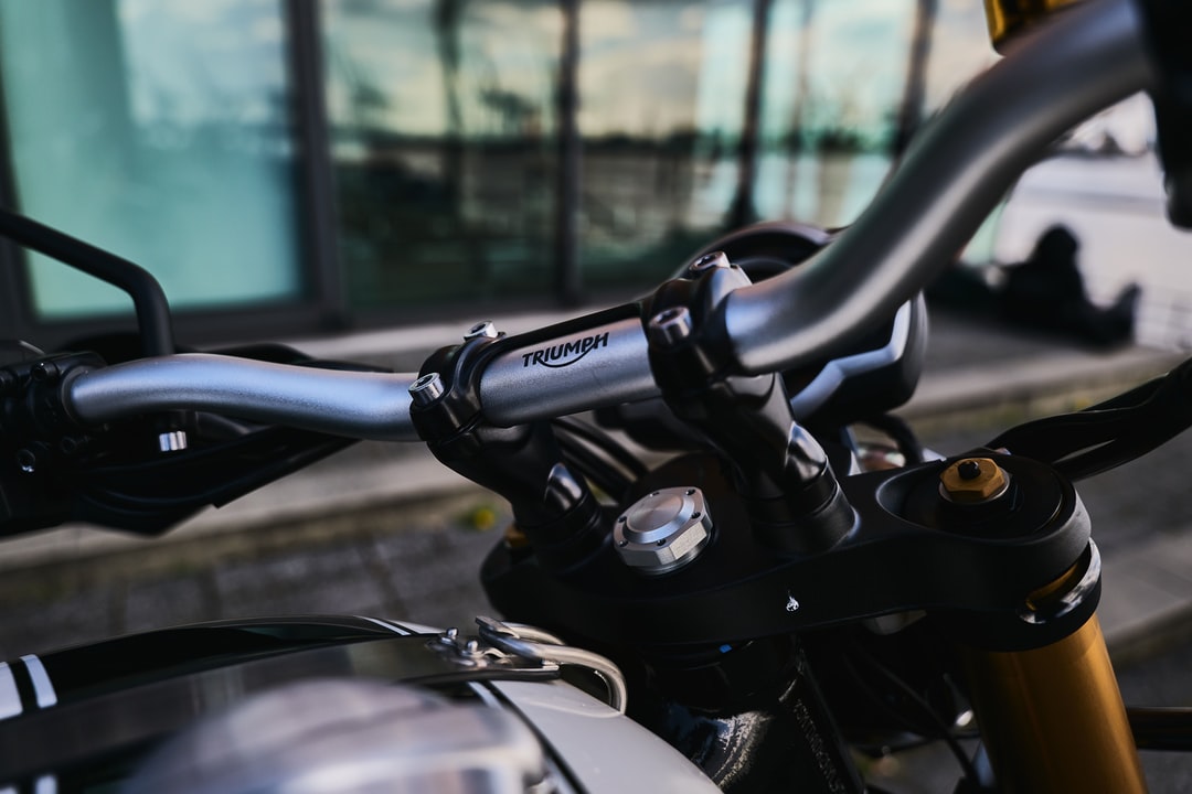 白天,绿色草地附近有一辆黑色和灰色的摩托车