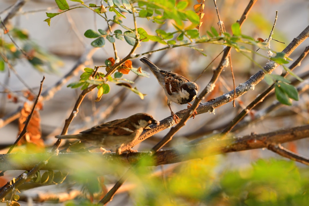 棕色和白色鸟褐色树枝白天