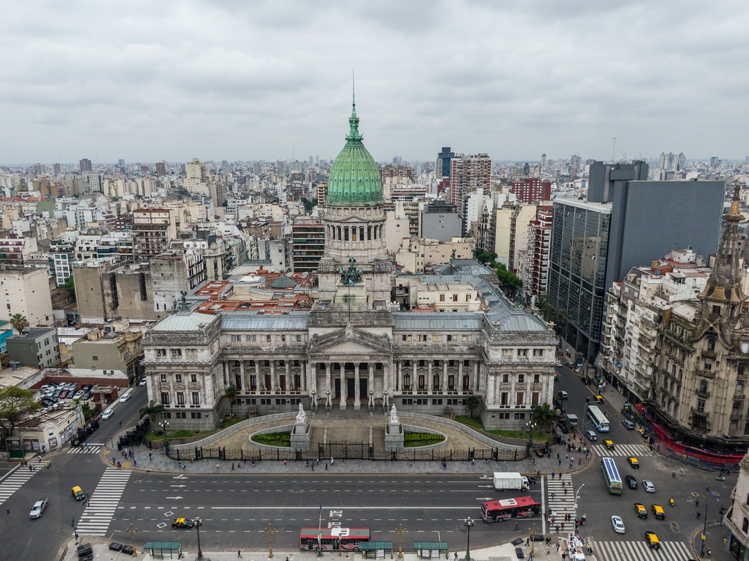 汽车在道路附近的城市建筑在白天