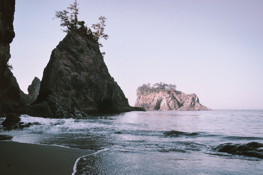During the day in brown rocks formed in the sea