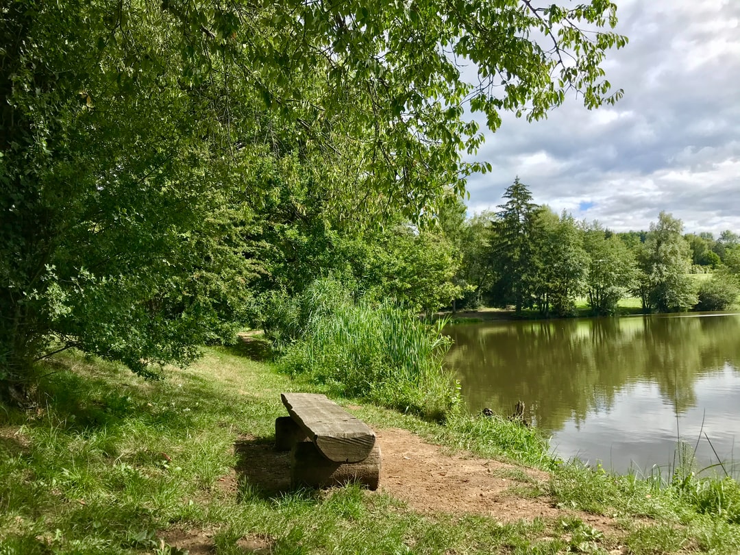 白天河边的绿树