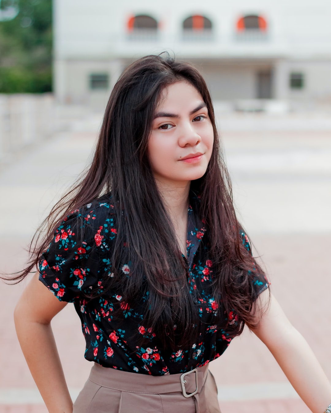 白天穿着黑色和红色花衬衫的站立妇女的选择性聚焦摄影