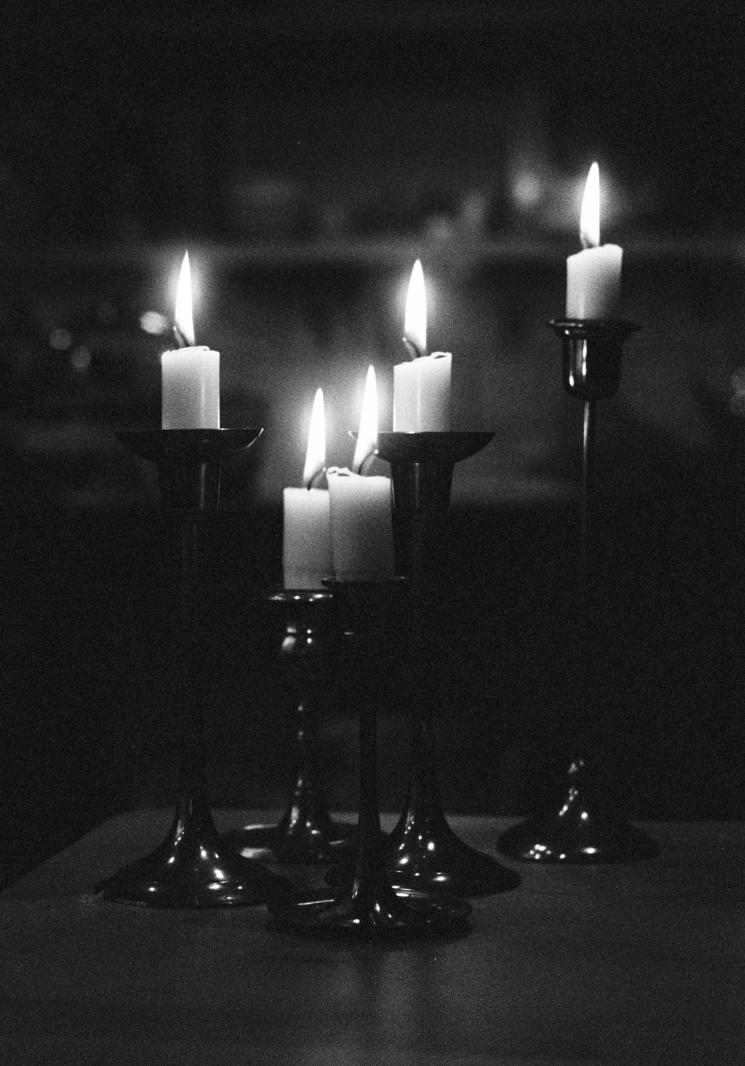 黑金属烛台上的白柱蜡烛