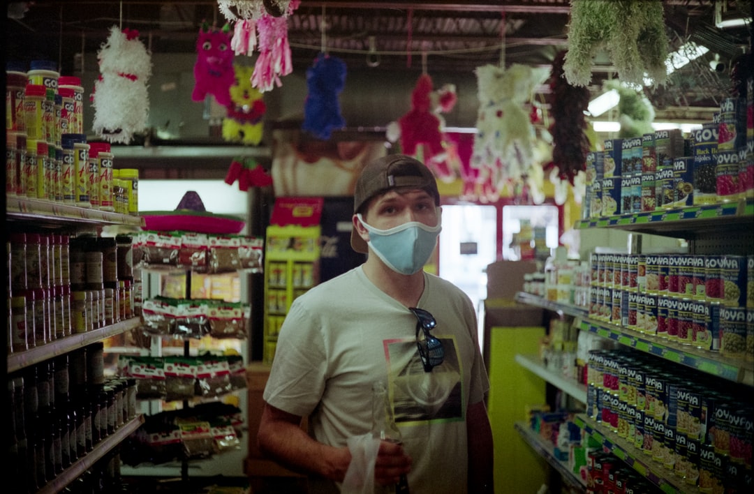 穿绿色马球衫戴白色面罩的男子