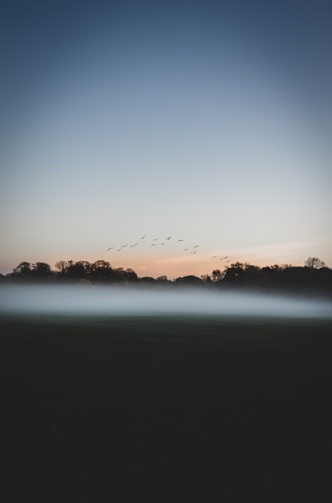 日落时水体附近树木的轮廓