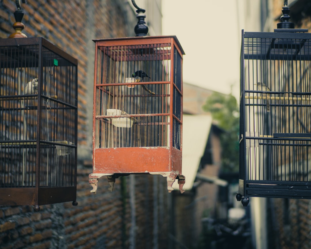 红色和黑色金属鸟笼
