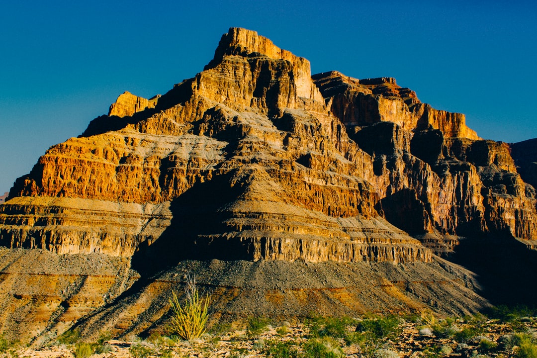 白天蓝天下的褐色落基山
