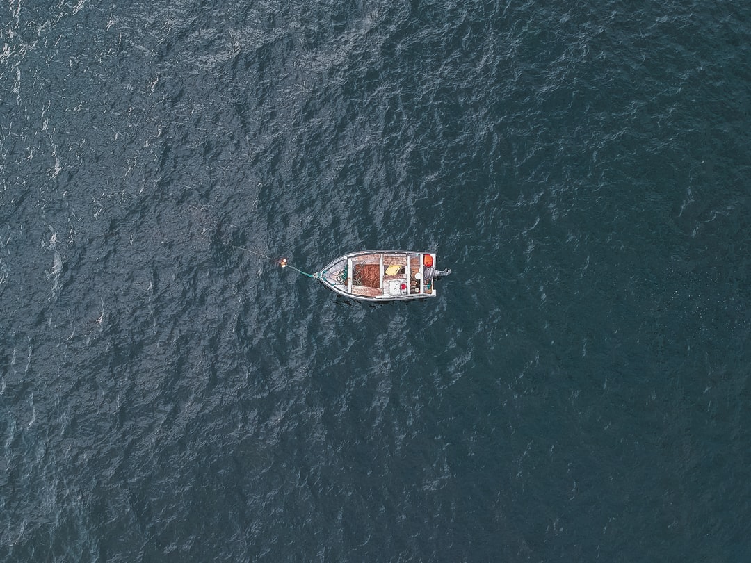 Grey boat floating on the surface of the ocean during the day