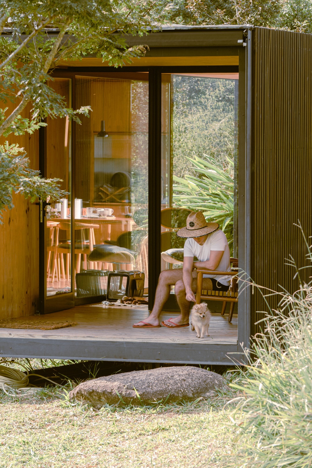 女人穿着白色背心坐在棕色的木头椅子