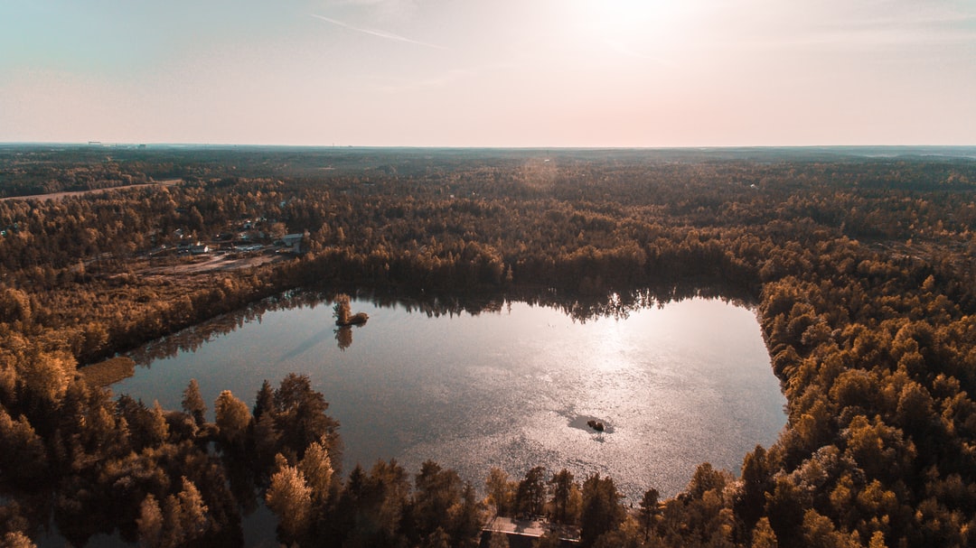 鸟瞰图摄影的平静的水面被树木包围着