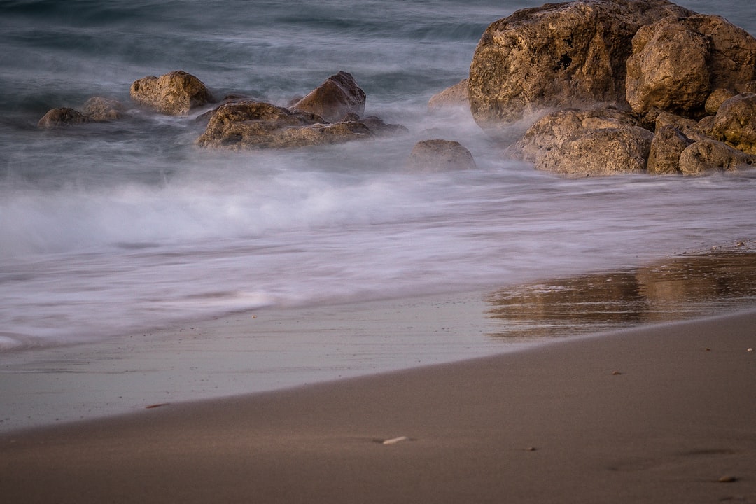 布朗岩层在海岸白天