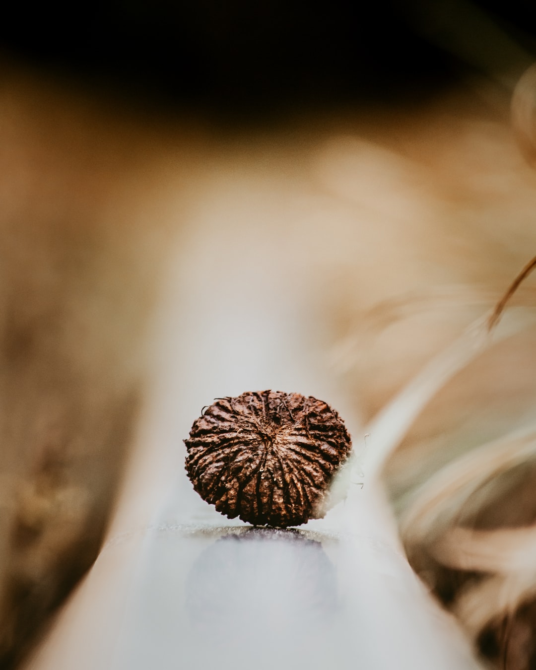 棕色的松果在白色的冰