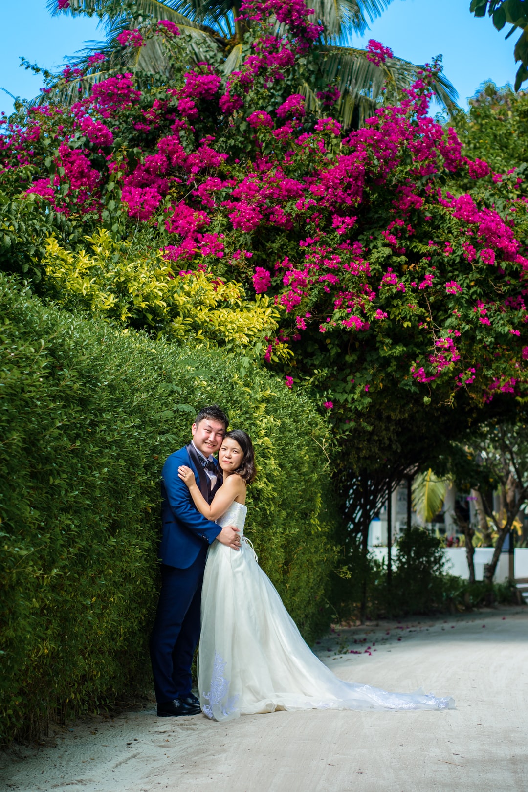 女人穿着白色婚纱的女人旁边蓝色长袖衣服