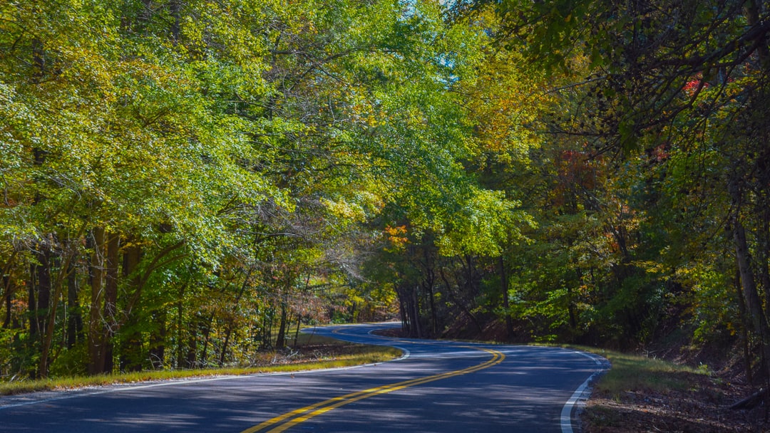 白天在高耸的树中间空荡荡的公路