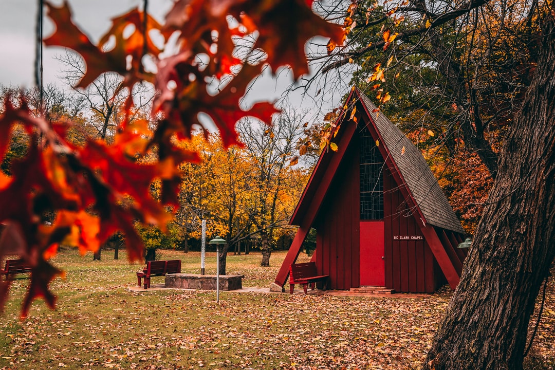 红房子在秋天的树木