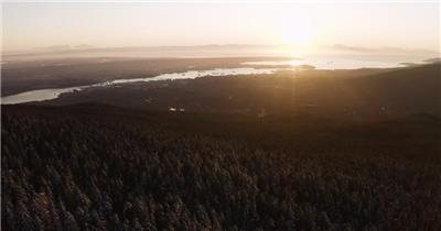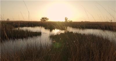 航拍绿色的河流田野和远处山脉背景下的湖泊
