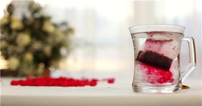 柠檬片放入透明玻璃杯中泡茶